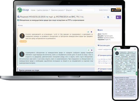 Специализиран изкуствен интелект, обучен върху съдебната практика на върховните съдилища, практика на Съда на ЕС, Конституционния съд и КЗЛД.